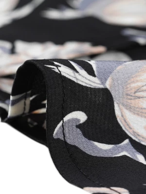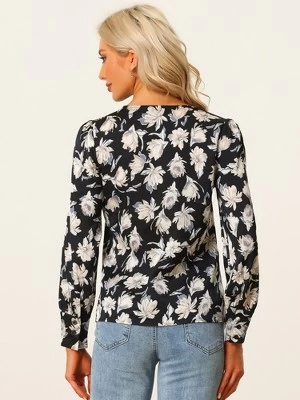 - This blouse is made up of several design points: floral print, satin fabric, button up, v neck and long sleeve