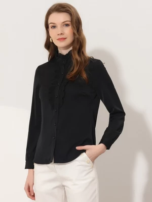 Style it with skinny jeans and high heels. With ruffle front design, this women’s top just provides elegant detail for the blouse. This blouse would be equally styled well with skinny jeans with high heels. Give your wardrobe a stylish update with this mesh panel blouse. This long-sleeve blouse designed with a ruffle neck shows your feminine and elegant style.