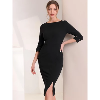 - Zipper Back, Split Hem, Sheath Pencil Dress