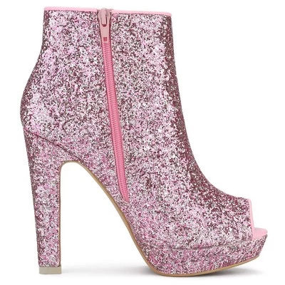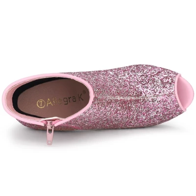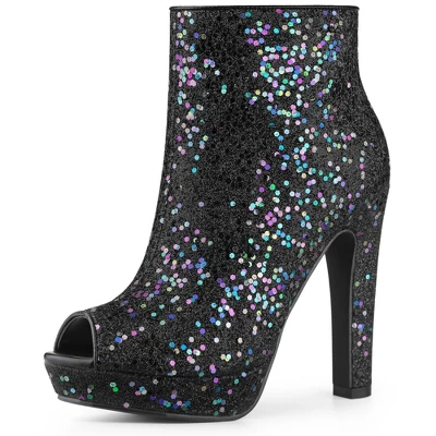 These glitter boots have a peep toe, a chunky heel, and a zipper closure. The shining glitter upper part gives these boots a fashion feel, and the heels are perfect for a night out on the town. The open design provides breezy comfort for your feet. With the moderate heel height, the heels make you feel more comfortable. Team them with your favorite dress and colorful accessories for a glamorous party look this season. Great for your mother, girlfriend, sister, or friend as a gift.
