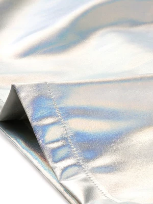 This metallic skirt with holographic fabric and A-line style shows off your feminine. Suits for weekend gatherings, parties, night clubs, christmas, halloween, etc. Pair it with a strapless bodysuit and pointed-toe boots for a totally cute look on many occasions. Perfect to pair it with crop tops, butterfly top, sequin tank top vest top, or t-shirt.