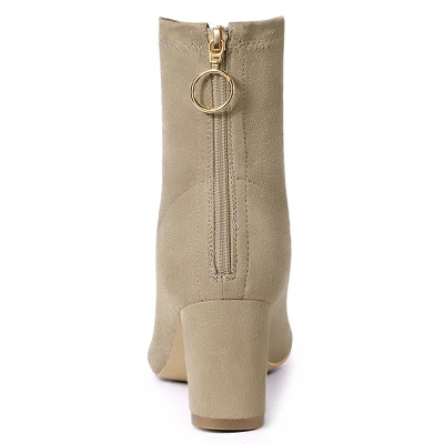 Update your footwear collection with these super stylish ankle boots. With a zip closure, a block heel, and fabric or faux suede, the boots are perfect to be paired with skinny jeans for a chic look. Ankle Boots, keep you warm on winter days. Chunky Heel, gives a fine grip and support to heels, eliminating the risk of falling. Classic Pointed-toe design helps elevate your body type and make you naturally look comfortable in your skin and body. Zipper closure, easy to wear. Vamp: Faux Suede(color Black and beige) / Fabric (Black and white). Rubber Outsole and ABS heel, anti-slip effectively. Moderate heel height, makes you feel more comfortable. Good options for parties, sweet dating, shopping, festivals, banquets, office outfits, casual wear, and daily outfits.