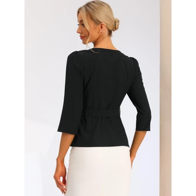 Introducing the Allegra K Elegant Blouses for Women’s Square Neck Belted Button Front Work Blouse Top. This top boasts a timeless square neck design that exudes an air of sophistication and adds a touch of uniqueness. With its button front closure, this blouse offers a polished and professional look that can take you from important meetings to everyday office wear. The belted waist accentuates your figure and creates a flattering silhouette that will boost your confidence. Elevate your work blouse collection with this top and step into the world of style and confidence today.