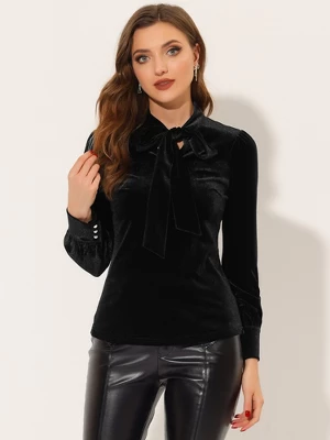 - This retro blouse is made up of several design points: Velvet Fabric, V Neck, Tie Bow Neck, Long Sleeves, Button Cuffs.