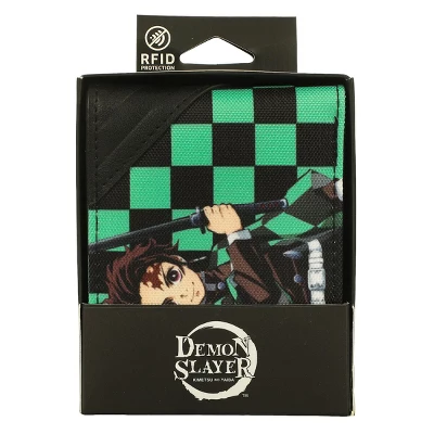 - CUSTOM DESIGN: Tanjiro holds his sword in front of a green and black checkered background on this wallet while the Kimadoti symbol appears on a black background on the other side. Fans of the Demon Slayer anime will love this fun design.