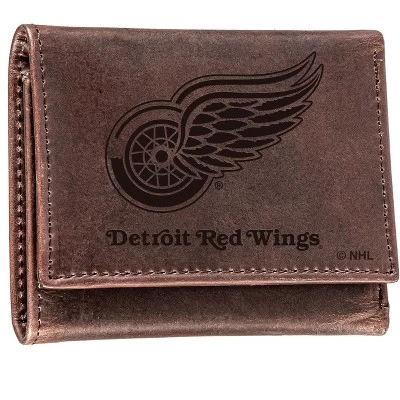 - Measures 5 x 3.9 inches. Impress fellow fans with this Detroit Red Wings crazy horse tri-fold wallet.