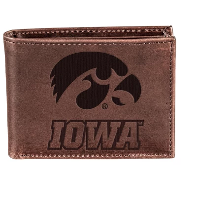 - Measures 4.5 x 3.8 inches. Impress fellow fans with this Iowa Hawkeyes crazy horse bi-fold wallet.
