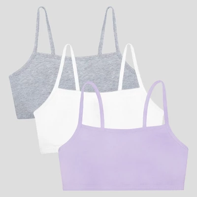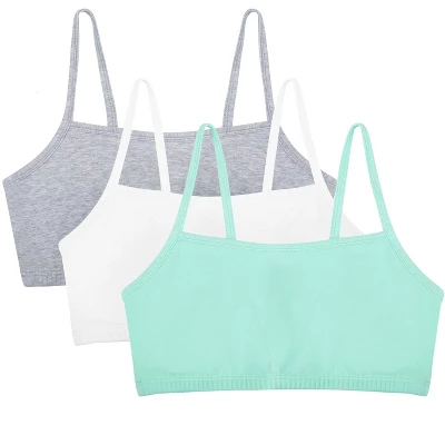 Basics bras for ladies are a wardrobe essential. The Fruit of the Loom Womens Spaghetti Strap Cotton Sports Bras can be layered under any shirt for a pop of color or additional coverage and support. These cotton pullover bras are perfect for everyday wear, designed with easily to hide spaghetti style straps and soft, stretch fabric for a comfortable and flexible fit. A comfortable and lightweight alternative to an underwire bra, the Fruit of the Loom Womens Spaghetti Strap Cotton Sports Bra includes 3 pullover sports bras perfect for everyday wear or low impact workouts. Layer the bras for added support and a strappy look.Wire-free bras designed with soft, stretch cotton for a flexible fit plus 2-ply construction that comfortably hugs and supports while offering modesty without padding. Cami bra style works well under low cut necklines and spaghetti bra straps hide easily under clothing. The ultimate comfort bras, weve thought of everything including a tag-free and hardware-free design. No itchy tags or metal slides on these bras. Our Unconditional Guarantee ensures that you get the best product every time or your money back. So run, jump, bike, or sprint happy with Fruit of the Loom. Additional colors available.