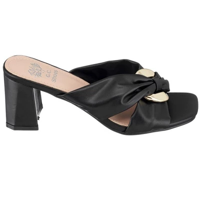 Inject a dash of sass into your ensemble with the Zane sandal by GC Shoes. Elevated by a sculpted block heel, this sandal features a padded strap upper adorned with captivating knot and metallic accents, enhancing its allure. Step out in style and intrigue with these eye-catching sandals, perfect for enlivening any outfit.