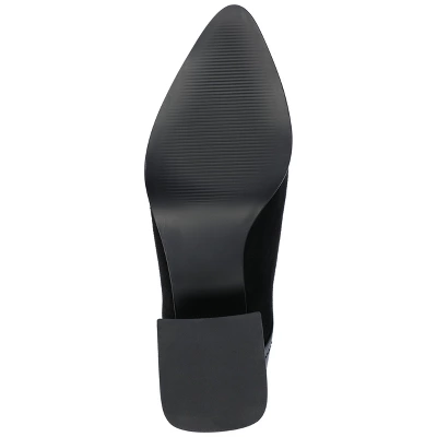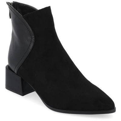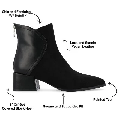 Meet Consuello, the classic and versatile bootie from Journee Collection that’s perfect for any wardrobe! Made from vegan leather with a two-tone accent. Consuello features a 2 in covered block heel, pointed-toe, and easy-to-use zipper entry for a simple and chic look. With a 4 mm Tru Comfort Foam™ insole, Consuello ensures a comfortable fit all day long and is great for mix-and-matching with any outfit.
