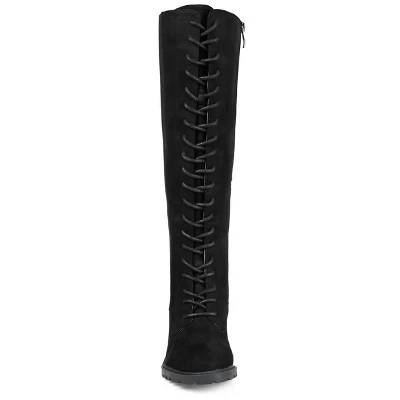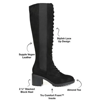 Go for bold in the Jenicca boots by Journee Collection. This knee-high boot is detailed with a stacked block heel and a classic lace-up closure. Supple vegan leather and a 4 mm Tru Comfort Foam™ insole finish this retro look for a comfortable fit. At Journee Collection, our boot styles will have your outfit looking even better than before. They will give you that finishing touch that will have your outfit looking straight out of a magazine.