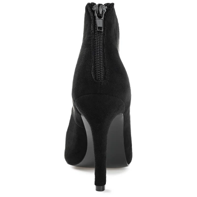 Effortlessly get a bold evening look with the Junniper heels by Journee Collection. This sky-high stiletto offers a walkable lift thanks to the soft vegan leather and the 4 mm Tru Comfort Foam™ insole. A high-ankle silhouette detailed with a keyhole at the vamp offers an unexpected twist to the look. At Journee Collection, our pump styles will let you go from a fun night out with the girls to kicking back and relaxing at the end of the night without any trouble.