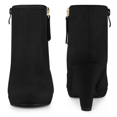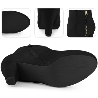 Bonus points for the trendy knee-high length that brings a modern edge to any look and the 8cm block heel that offers hours of walkability. Ankle Boots; Chunky Heels; Side Zipper; Round Toe; Vamp: Faux Suede; Outsole: Rubber; Heel: ABS; Heel Height: 3 1/8 inches; Shaft Height: 4 1/8 inches. Please check your size to make sure the item fits before ordering.