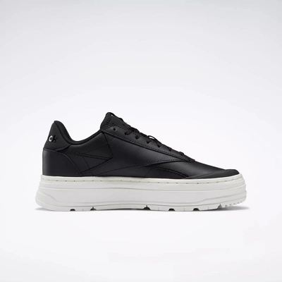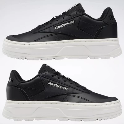 Clean crisp and made to reach new heights (thanks to that platform midsole). Totally Reebok. Pair these women’s stacked tennis-inspired shoes with anything in your closet for an instant win. Hits of color add subtle pop. The smooth leather upper comes standard.