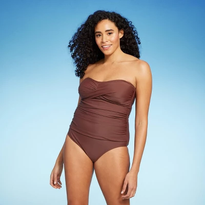 This Twist-Front Bandeau Classic One-Piece Swimsuit from Kona Sol™ makes a perfect trip for beach vacations or long days at the pool. Made from soft fabric with full lining and added spandex, this one-piece swimsuit offers stretchy comfort in and out of the water. The twist-front bandeau style offers a timeless look, and an open back completes the breezy design.