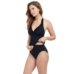 Lands’ End Women’s Plus Size DD-Cup Slender Tummy Control Chlorine Resistant Wrap One Piece Swimsuit
