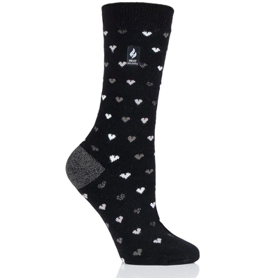 Women requiring size 8-13 can look at Men’s styles.Heat Holders® ULTRA LITE™ thermal socks have been designed to provide our famous thermal protection and comfort in a lightweight profile, ideal for wearing in tighter fitting shoes!Compared to our LITE™, medium long loop length thermal socks with 1.60 Tog rating (Thermal Overall Grade), Heat Holders® ULTRA LITE™ thermal socks have a short loop length with 1.04 Tog rating.Keep feet warm on the coldest of days and pull on this pair of heart patterned, lightweight, crew length Heat Holders® ULTRA LITE™ for women, the warmest thermal sock.Heat Holders® are made from a specially developed heavy bulk yarn which has extreme thermal qualities. The inside of each sock has been intensively brushed such that they not only feel sensationally soft but also trap warm air close to the skin keeping your feet warmer for longer.Heat Holders® are non-binding; they are also diabetic friendly and provide relief for cold feet due to circulation problems.